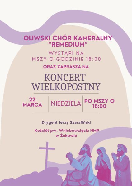 Serdecznie zapraszamy za Msze świętą i koncert wielkopostny Oliwskiego Chóru Kameralnego "Remedium".